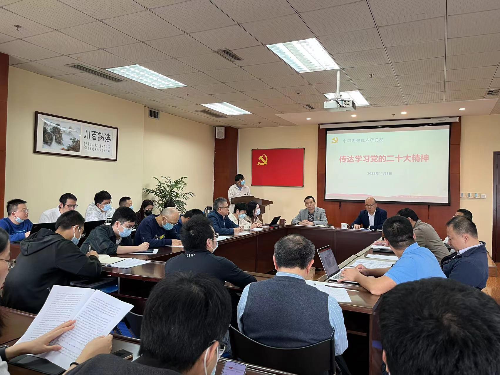 11月1日,研究院在格致楼1114会议室召开教职工大会传达学习党的二十大精神。全体教职工、学生党支部书记参加会议。党委书记杨奇才、研究院院长毛中根领学,并对研究院学习宣传贯彻党的二十大精神工作作出了安排。