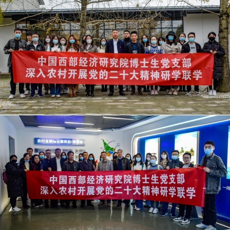 日前,研究院博士研究生党支部深入农村,并与中国人民银行温江支行党支部、成都市温江区财政局机关党委、成都市温江区农业农村局机关党委和中国农业银行成都温江支行党委开展了一次党的二十大精神研学联学活动,取得良好的学习效果。