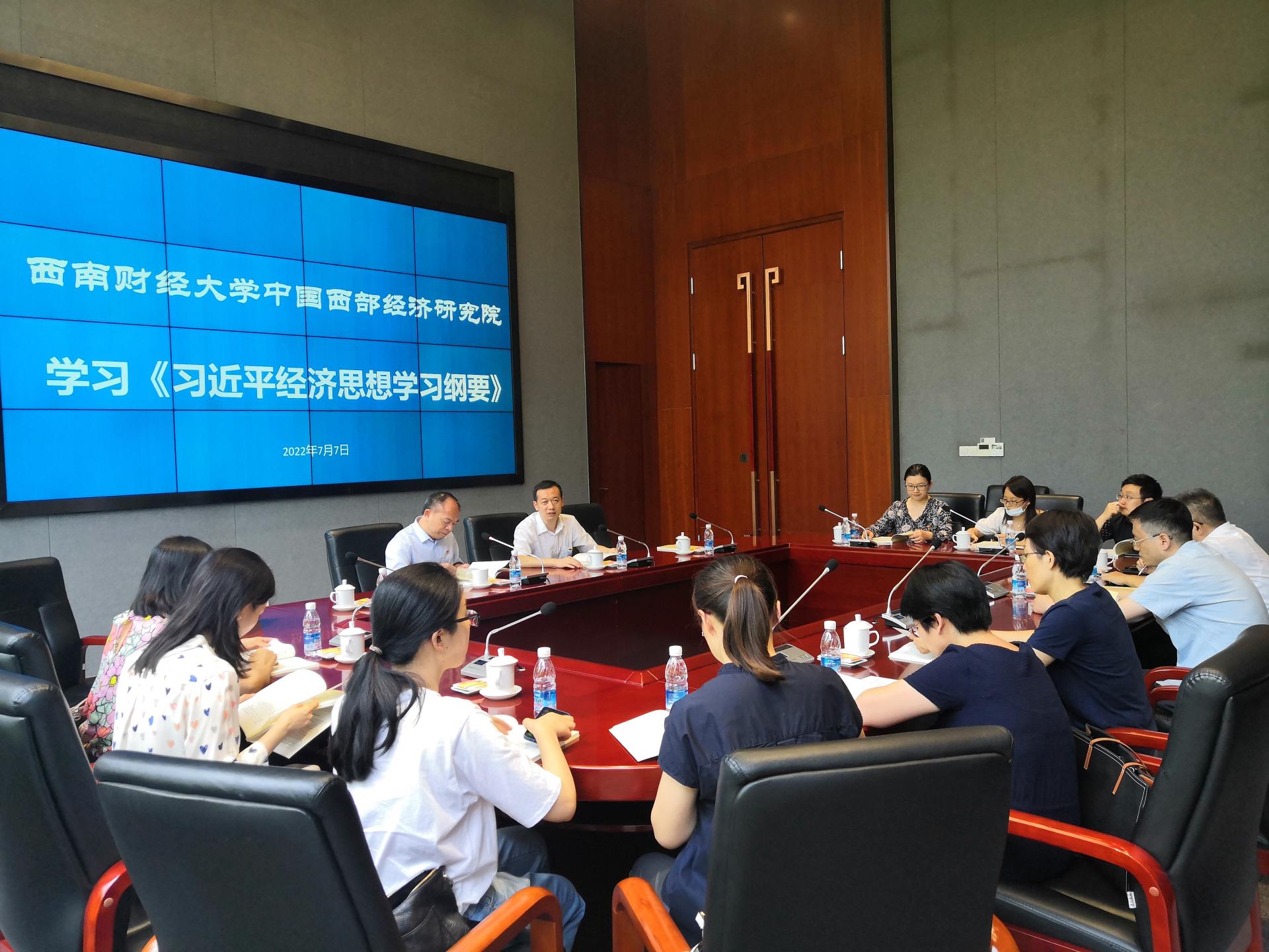 研究院党委书记杨奇才在学习会上谈到,《习近平经济思想学习纲要》为我们全面深入系统学习研究习近平经济思想提供了基本遵循和文献基础,我们要结合自身的学科特点、专业方向,结合成渝地区双城经济圈建设、新时代西部大开发等重大战略,深入学习、持续研究,积极参与四川现代化经济体系建设、成都公园城市建设等重大实践,切实为服务国家战略、为促进西部经济高质量发展做出贡献。