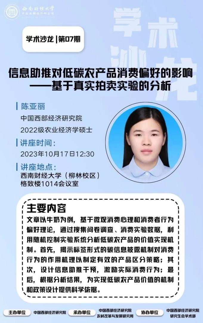主讲人:陈亚丽 中国西部经济研究院2022级农业经济学硕士研究生