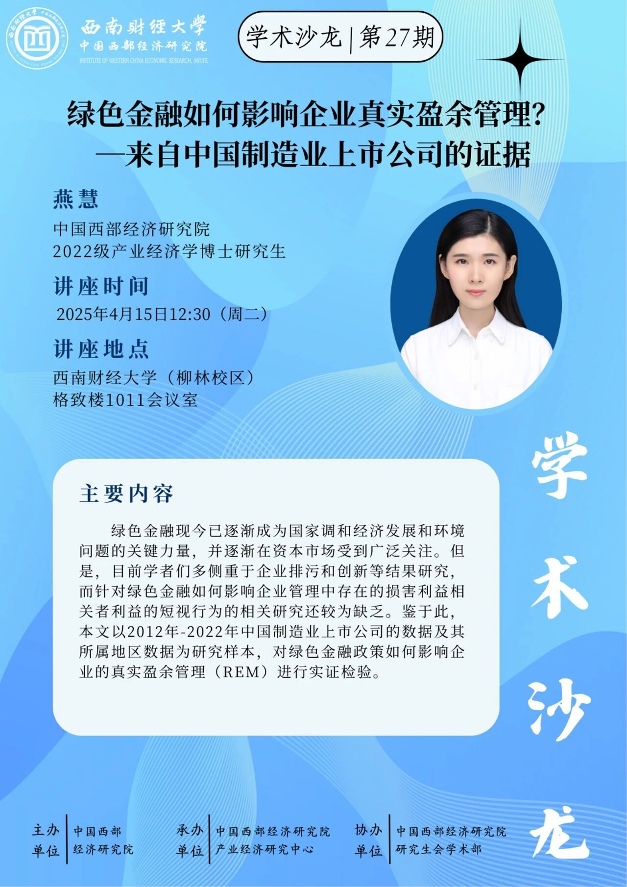 燕慧 中国西部经济研究院 2022级产业经济学博士研究生