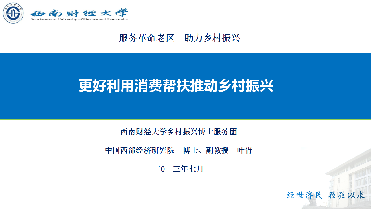 叶胥博士基于流量的视角,就“消费帮扶更好地推动乡村振兴”进行了发言。他提出,消费帮扶实际上为乡村振兴打开了“流量”开关,在流量与数字经济时代,乡村振兴要用好消费帮扶带来的流量,做好“流量”文章。他认为,帮扶产品需要故事化、话题化、观感化和小样化,才能有效在帮扶助力下、在流量时代走得更远。他还就如何故事化、话题化、观感化和小样化进行了举例,并结合通江现实提出了建议。