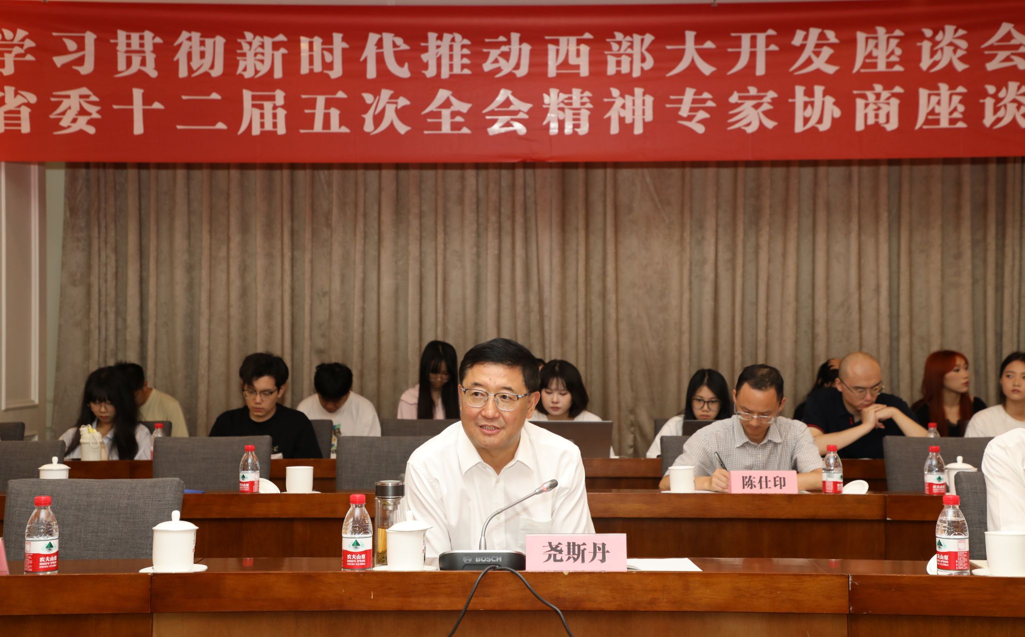 尧斯丹对座谈会的成功举办表示热烈祝贺,对会议主办单位、协办单位的支持配合,以及专家学者们的积极参与表示衷心感谢。要坚定扛好党中央和习近平总书记赋予四川的使命任务,充分认识四川是我国发展的战略腹地、在国家发展大局特别是实施西部大开发战略中独特而重要的地位,全面学习贯彻省委十二届五次全会精神,全力以赴拼经济、搞建设。要整合渠道,共同发力,推动研究成果转化落地,为促进西部大开发形成新格局、助推四川成为带动西部高质量发展的重要增长极和新的动力源贡献智慧和力量。