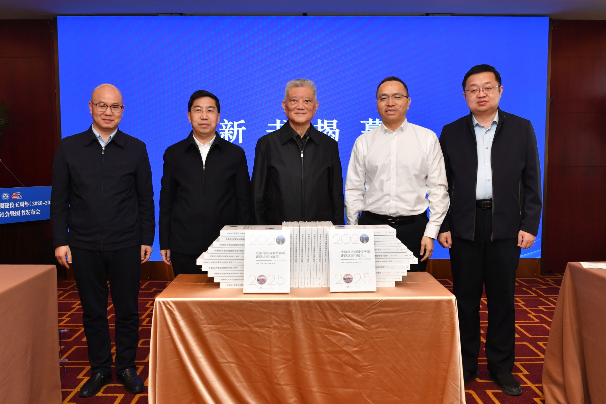 第十届四川省政协副主席解洪、赵建军、马跃、学校中国西部经济研究院院长毛中根等共同为新书揭幕。毛中根代表课题组就《成渝地区双城经济圈建设进展与展望:2020-2025年》主要内容作介绍。该成果基于成渝地区双城经济圈建设战略定位与地区实际,以“两中心两地”战略定位为论纲,构建起成渝地区双城经济圈建设“四位一体”及以区域协调发展为保障的分析框架。围绕成渝地区双城经济圈建设五周年的成效进展、现实困难与未来展望展开论述。通过重要经济中心、科技创新中心、改革开放新高地、高品质生活宜居地等4个专题22章系统论述成渝地区双城经济圈在基础设施网络建设、产业发展、现代高效特色农业带建设、经济区与行政区适度分离改革、国际消费目的地建设、公共服务共建共享等方面的成就进展、问题困境及未来展望。