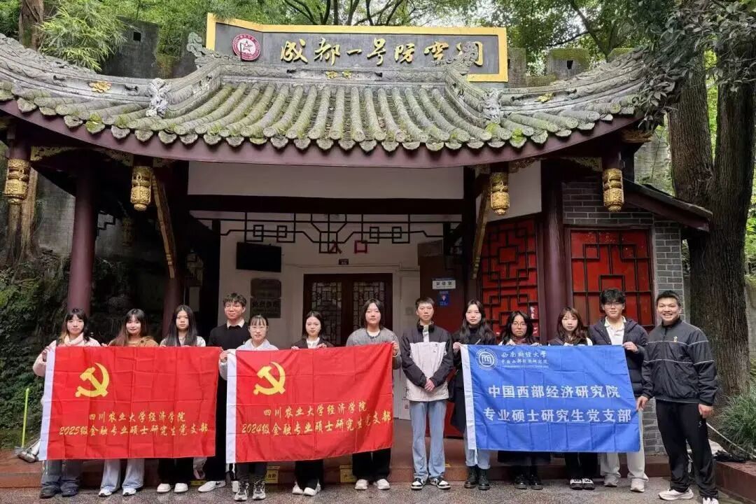 近日,中国西部经济研究院专业硕士研究生党支部同四川农业大学经济学院金融专业硕士研究生党支部前往成都市人民公园联合开展了“红色金融映初心,抗战精神铸忠魂”沉浸式主题党日活动。两校研究生通过实地探访历史遗址、红色歌曲接唱、廉洁金融故事接龙等方式,在庄严仪式与生动实践中,完成了一场跨越时空的信仰对话。
